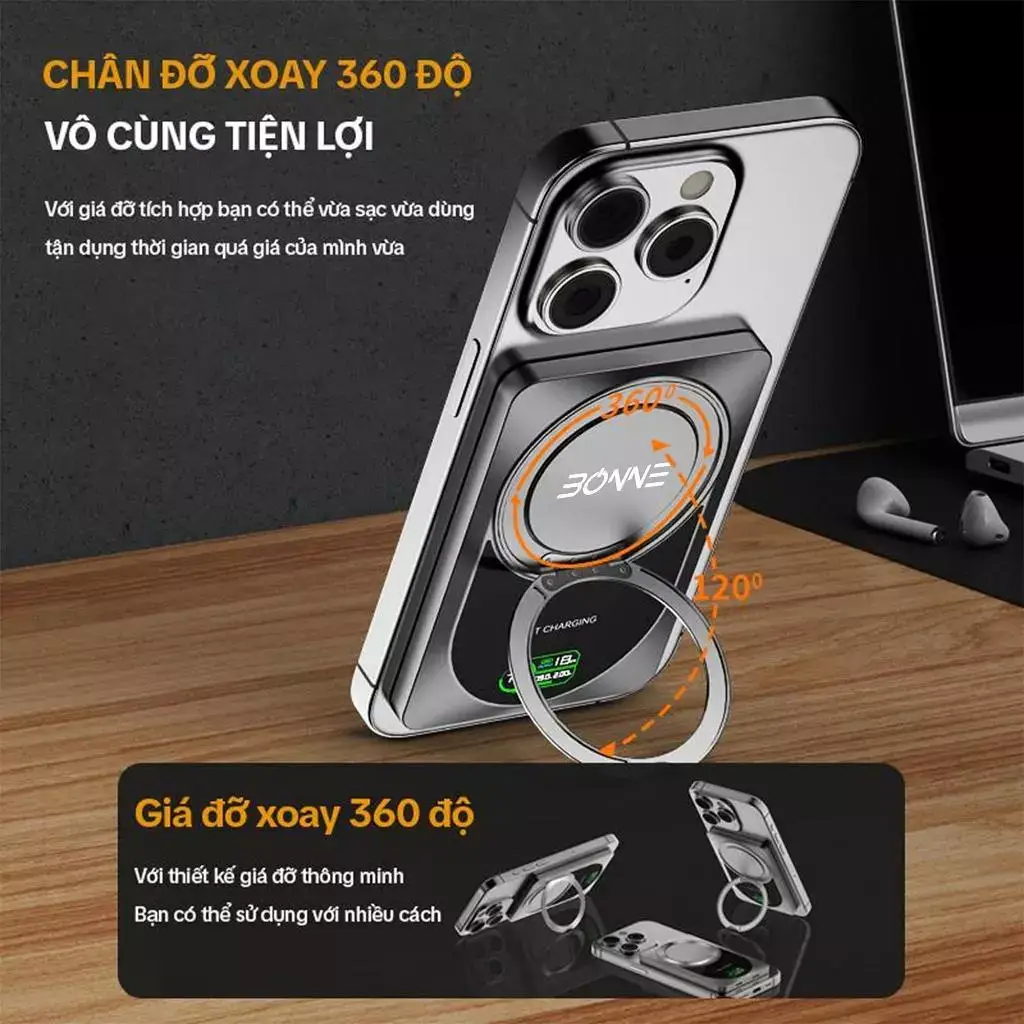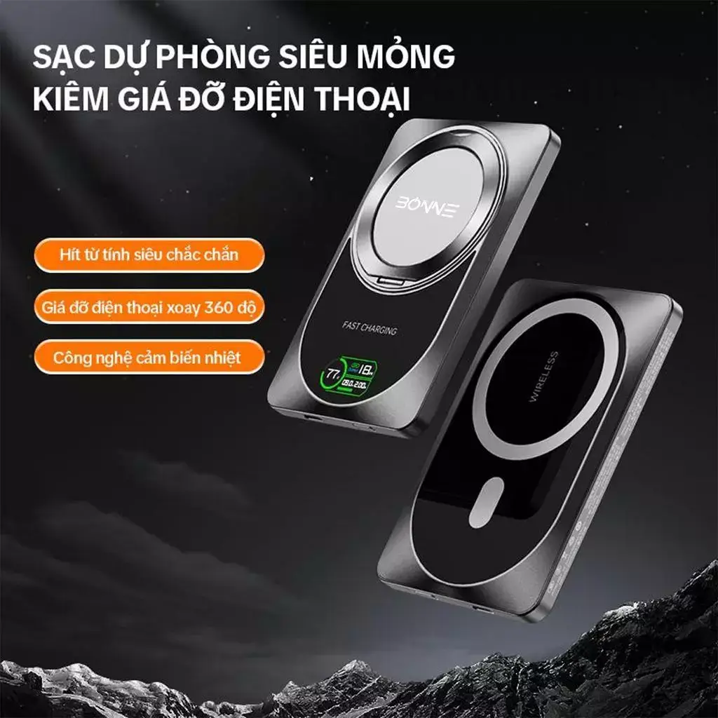 🔹 Tính năng: Hiển thị LED, sạc nhanh, sạc không dây, sạc nhiều thiết bị.