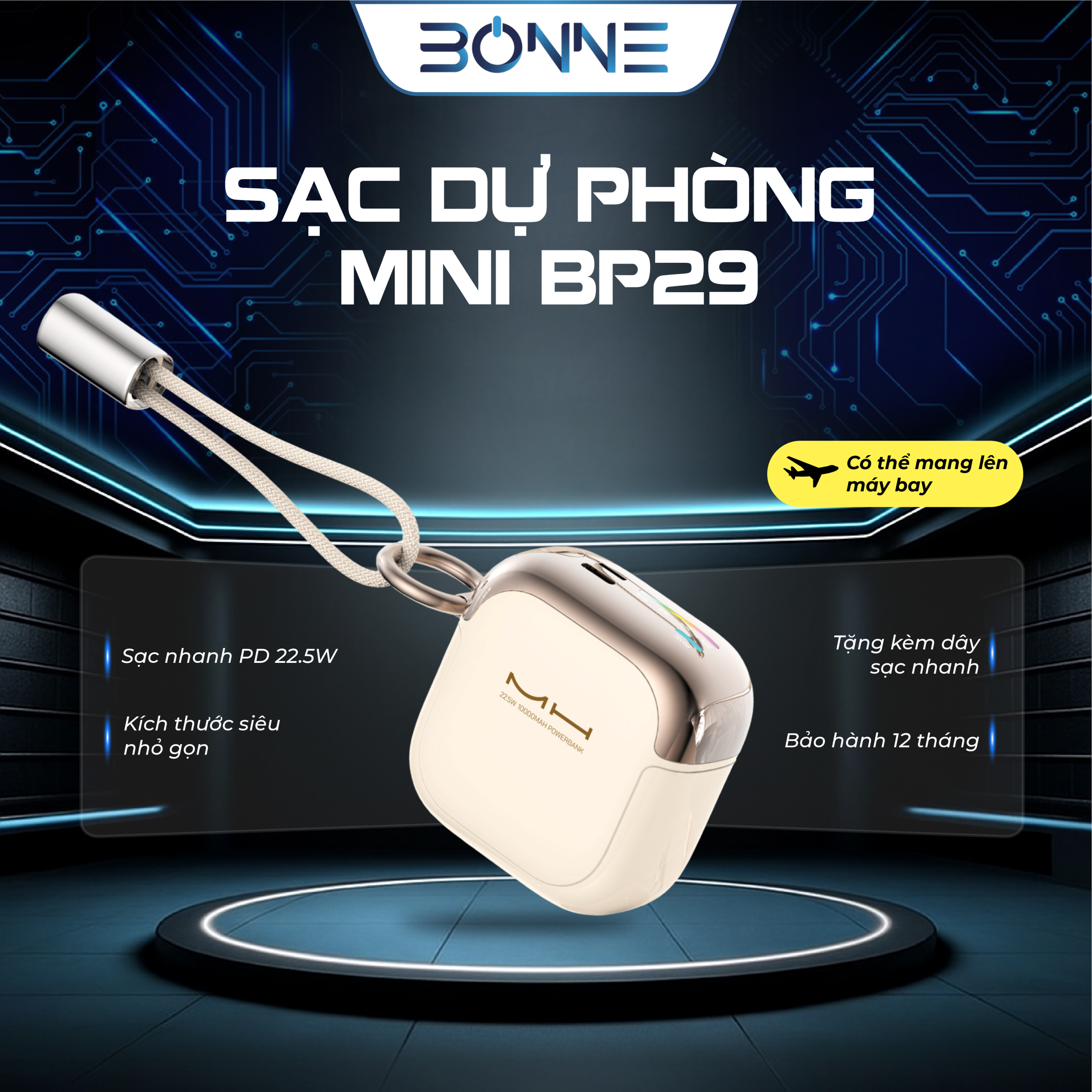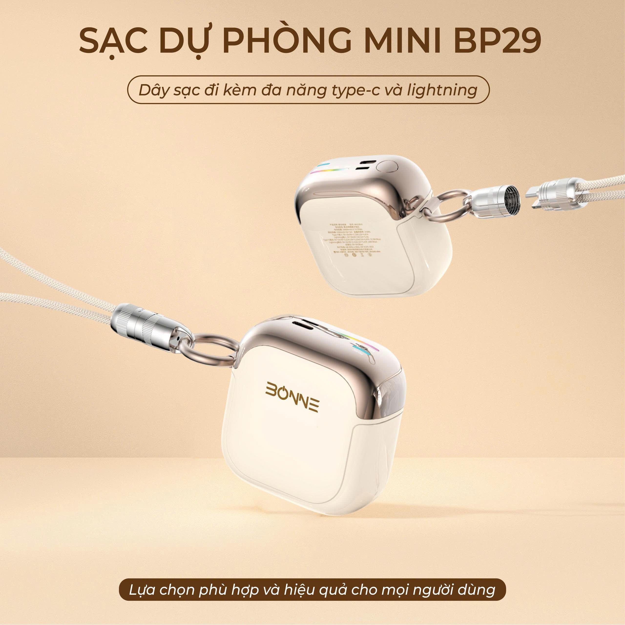 Sạc dự phòng BP29 mini 10000mAh 22.5W tích hợp dây